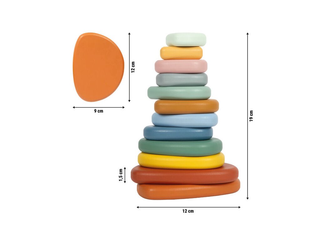 Těchto dvanáct vysoce kvalitních balančních kamenů z FSC® 100% certifikovaného dřeva v různých velikostech a jemných, moderních barvách přináší do dětského pokoje klid, koncentraci a zábavu v jednom. Hra s nimi podporuje rozvoj motoriky, trpělivosti a vnímání rovnováhy. Děti mohou kameny balancovat, stavět na sebe, třídit nebo počítat, a přitom si hravou formou procvičují jemnou motoriku, soustředění i kreativní myšlení. Inspirováno Montessori pedagogikou: balanční kameny vedou děti k všímavé a klidné aktivitě, ať už si hrají samy nebo společně s ostatními. Jde o všestrannou hračku s meditativním účinkem, která nabízí nekonečné možnosti hry a objevování.