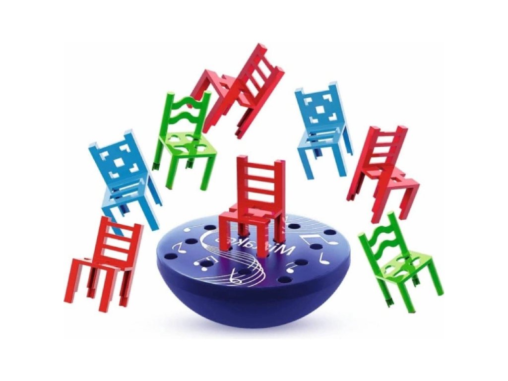 Pospěšte si, než se spustí alarm! Základna se roztočí a začne židličky shazovat. Zvítězí první hráč, který se zbaví všech svých židliček.
