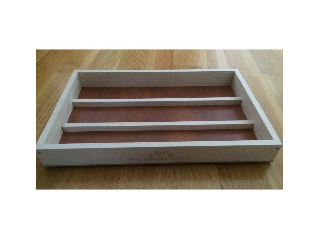 Krabička je vyrobena z masivního bukového dřeva, dno ze sololitu. Dno je opatřeno filcovými páskami pro snadnější a tichý pohyb krabičky po stole.