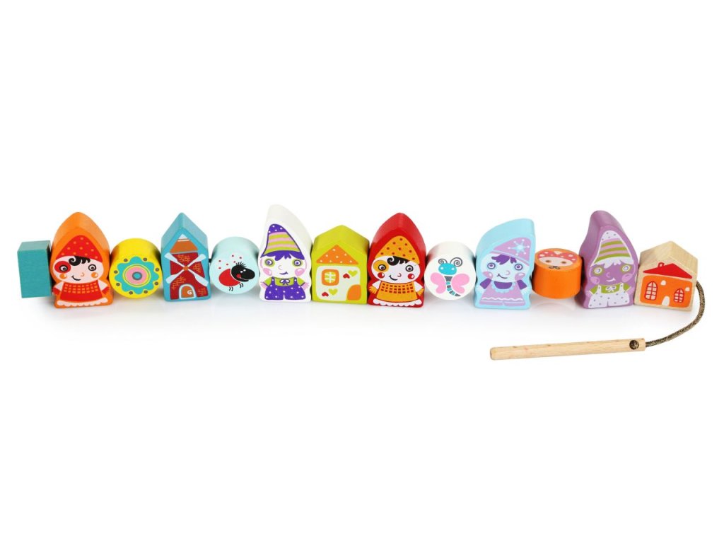 CUBIKA 13654 Navlékací trpaslíci - navlékací set - 13 dřevěných dílů a 8 předloh