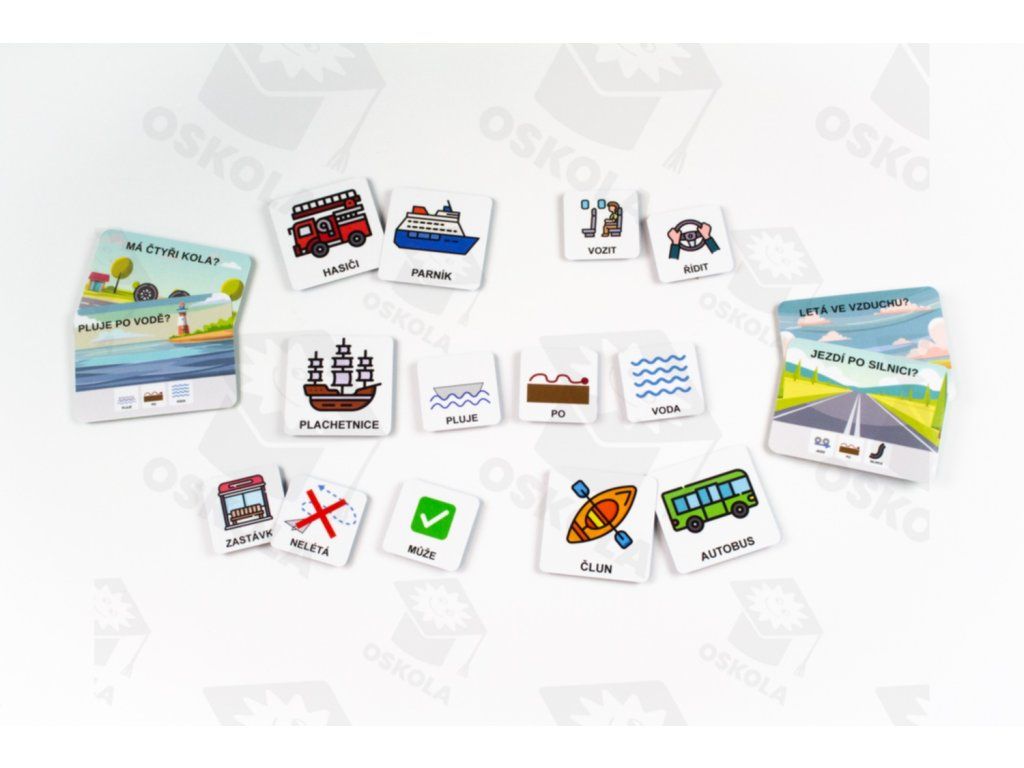 Logopedická karetní hra pro děti od 4 let zaměřená na dopravní prostředky. Děti odpovídají na otázky, třídí a tvoří věty typu „Auto jezdí po silnici“. Hra rozvíjí slovní zásobu, správnou výslovnost, porozumění i logické myšlení. Vhodná pro rodiče, pedagogy i logopedy.